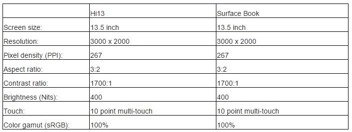 Ensuite, et c’est important, la taille et les caractéristiques de l’écran: c’est le même que la Surface Book, un grand 13,5 pouces, en 3000 x 2000 pixels avec 267 PPI.