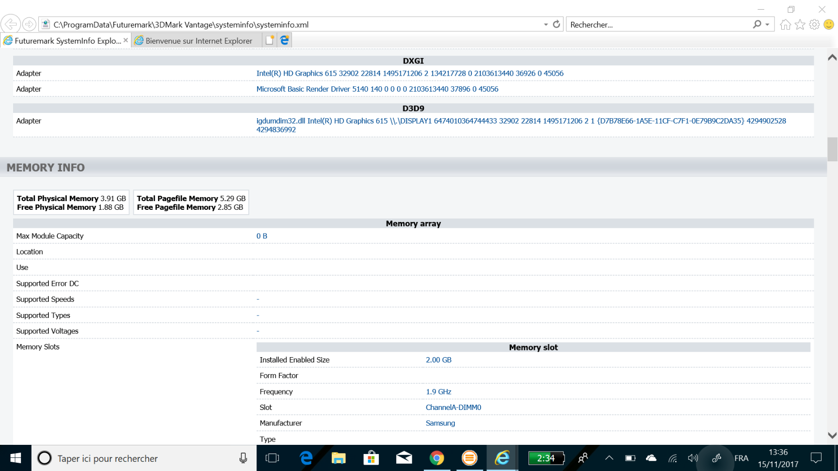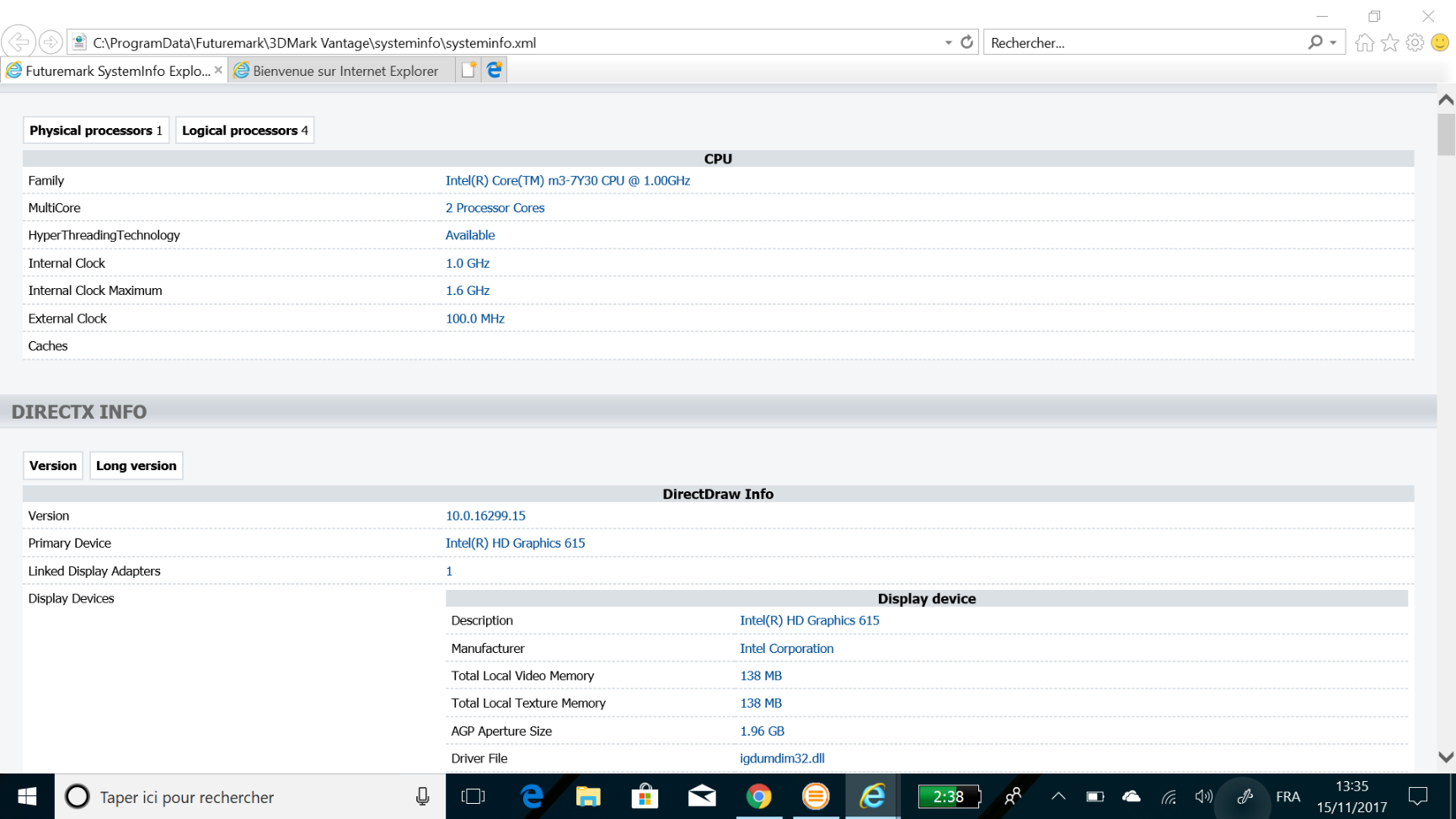 J’ai mis en ligne deux vidéos intégrales, sans doublage sonore ni commentaire, pour permettre aux plus affutés d’entre vous de repérer les niveaux de FPS atteints avec 3dMark05 et 3dMark06. Ces deux logiciels montrent à eux seuls les capacités en jeu sous directX9 et directX10. Pour des jeux plus lourds sous directx11, il faudrait tester avec des réglages réduits. A voir. Quant à directX12, pour le moment c’est réservé aux grosses configurations PC pour joueurs…