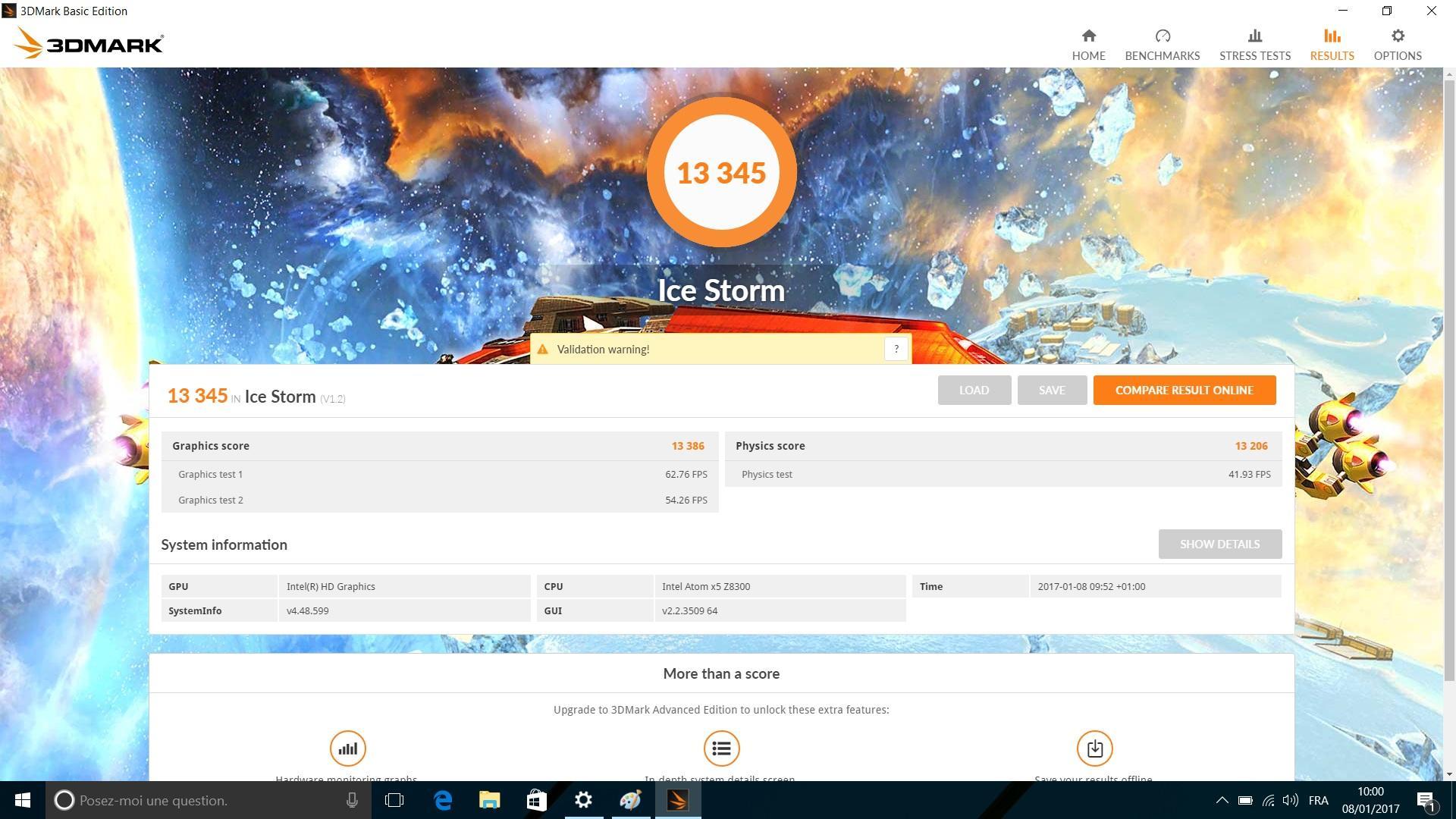 L’ensemble des composants fonctionne très correctement. Malgré la taille de l’écran, les mesures sont conformes à cette configuration.