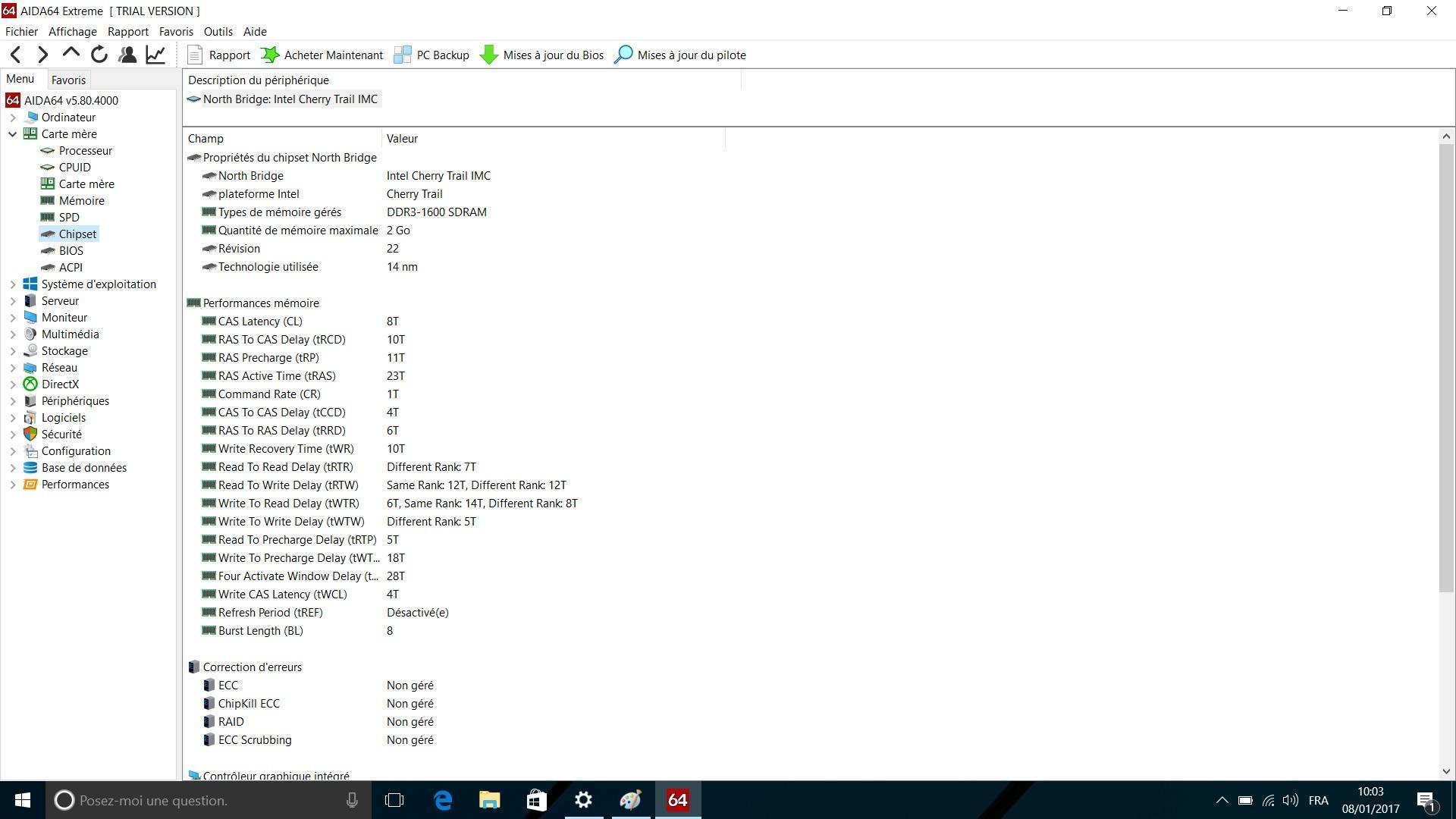 Intel Cherry Trail Z8300 Quad Core 1.44GHz, jusqu’à 1.84GHz