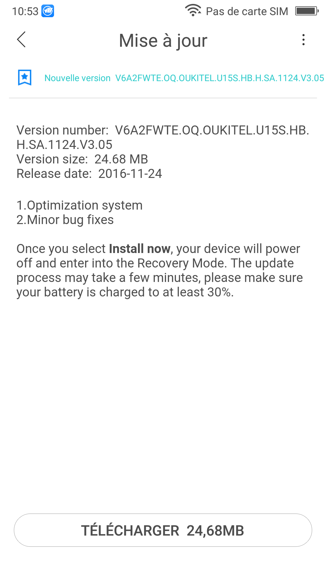 Au niveau système d’exploitation, l’Oukitel U15S est animé par l’OS maison Dido dans sa version 7.0, basé sur Android Marshmallow. La quasi-totalité de l’OS est bien traduite en français, il ne reste que peu de traces d’anglais. Lors de la réception du smartphone, une mise à jour était disponible, pour autant cela n’augure en rien de mise à jour futures ou même d’un passage à Android Nougat.