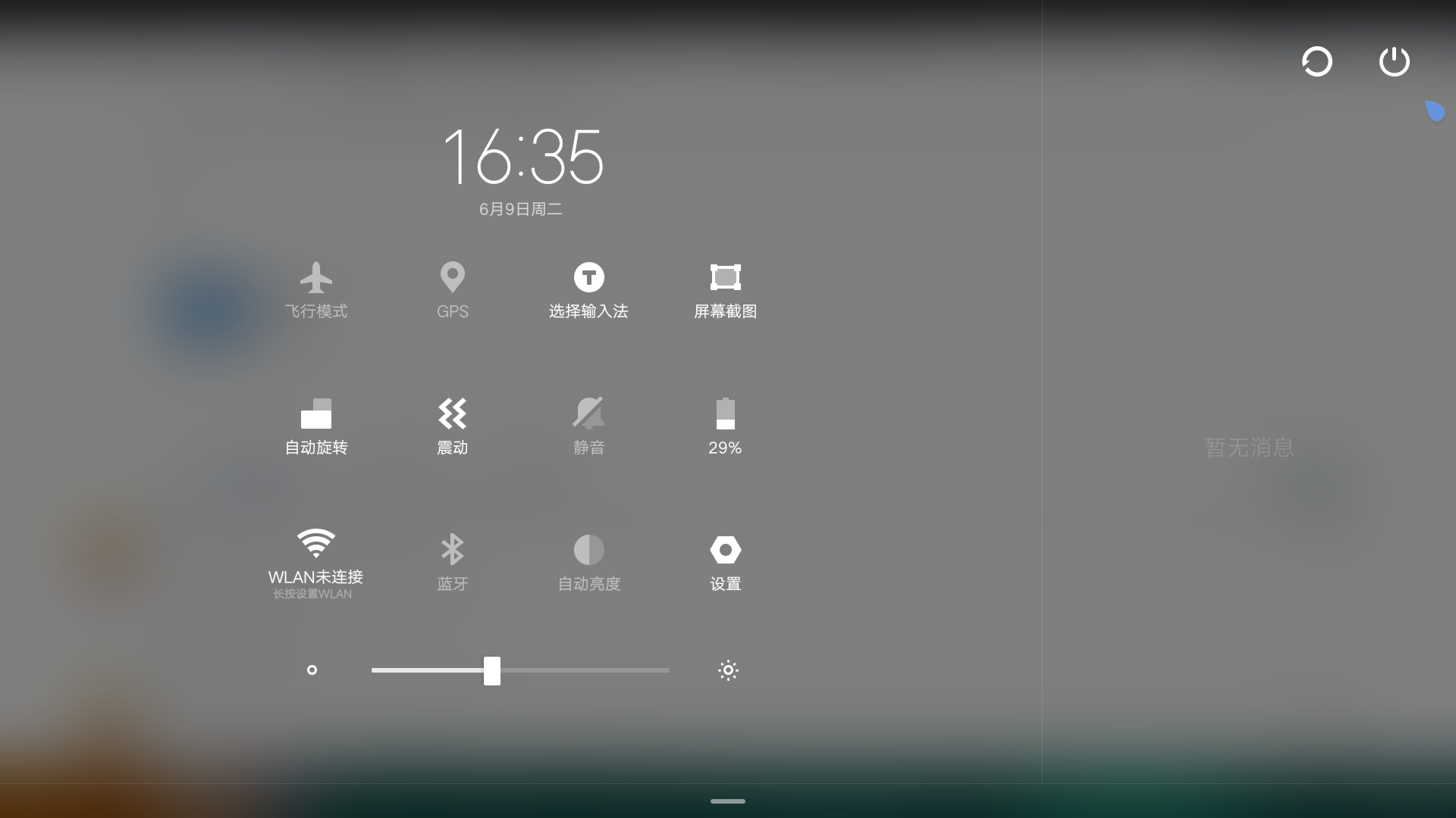 En « tirant » à partir du bord supérieur de l’écran, on fait apparaitre le système de notifications ainsi que les options les plus courantes du système. Un appui long sur l’icone wifi par exemple nous permet d’accéder à son réglage.