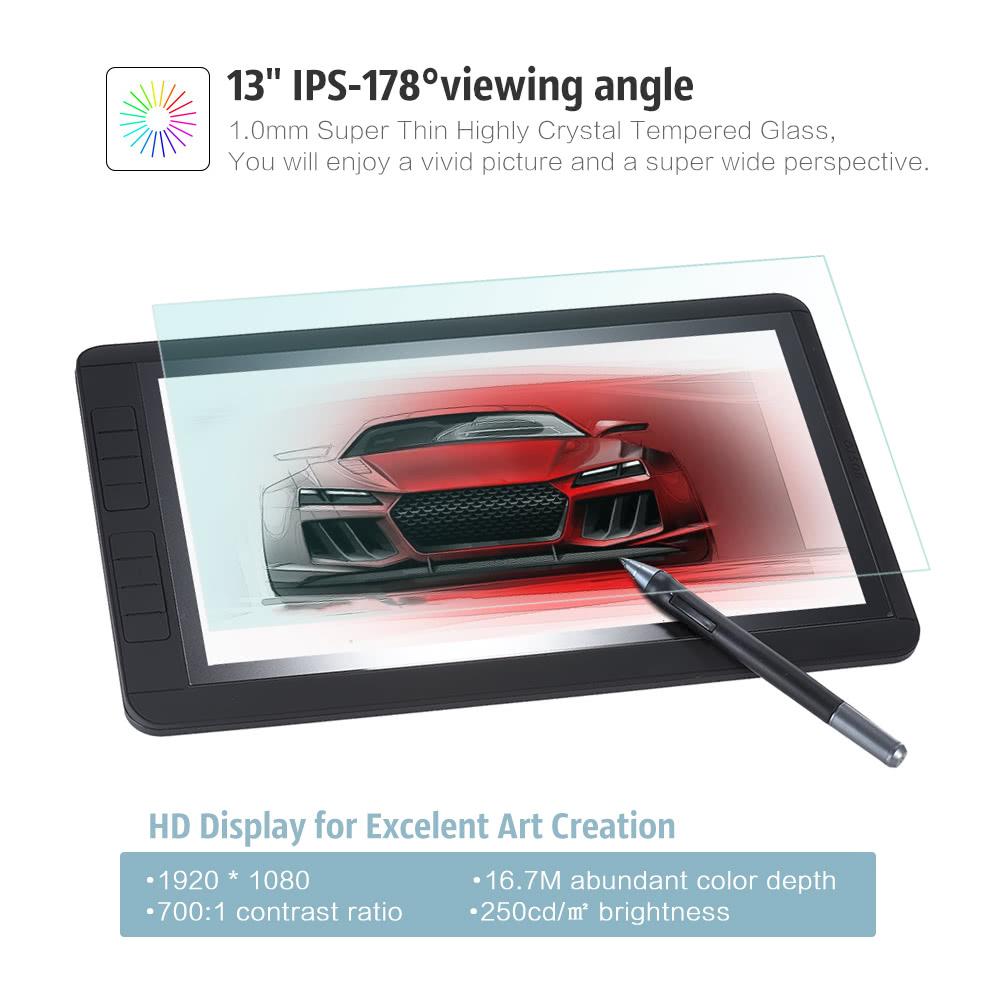 – tablette graphique de 13 pouces (33cm de diagonale) en Full HD 1920×1080