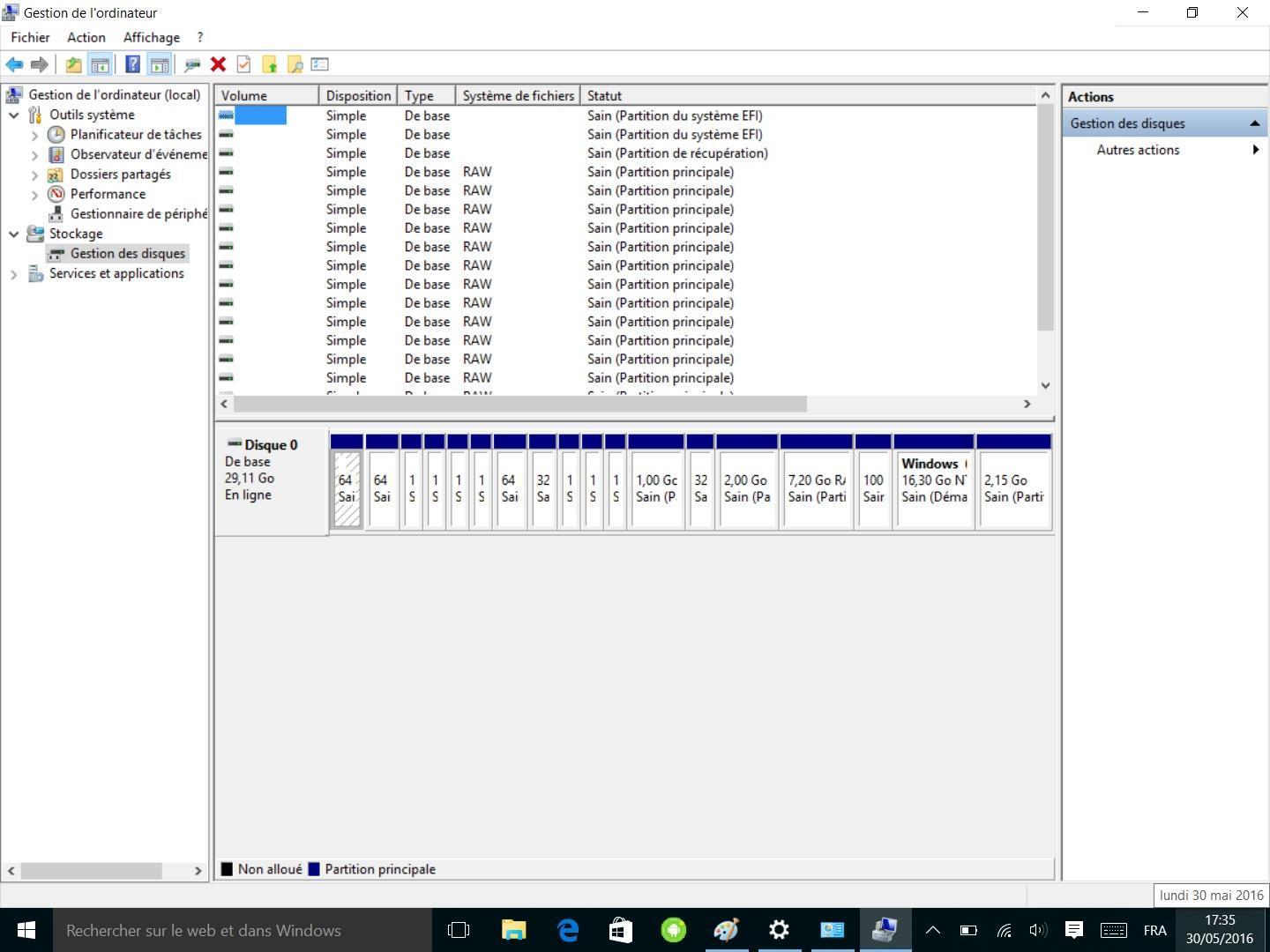 Les 32 Gb sont répartis en gros de la façon suivante; pour Windows 20GB, et 12GB pour Android. Au final bien sûr les tailles disponibles sont inférieures mais permettent d’installer plusieurs applications sur chaque système.