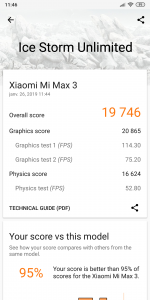 Lors de ce test du Xiaomi Mi Max 3, les benchmarks ont donnés des résultats cohérents avec sa fiche techniques, à savoir un SoC Qualcomm Snapdragon 636, associé à 4 Go de RAM et 64 Go de stockage interne, c’est la seule variante qui existe en version Global. Il est possible d’étendre le stockage interne par ajout d’une carte SD jusqu’à 256 Go, celle-ci utilisera alors le slot SIM2. Le Xiaomi Mi Max 3 est des plus simple à utiliser et l’expérience utilisateur est très satisfaisante. Toutes les taches que vous pourrez lui confier seront exécutées sans difficulté.