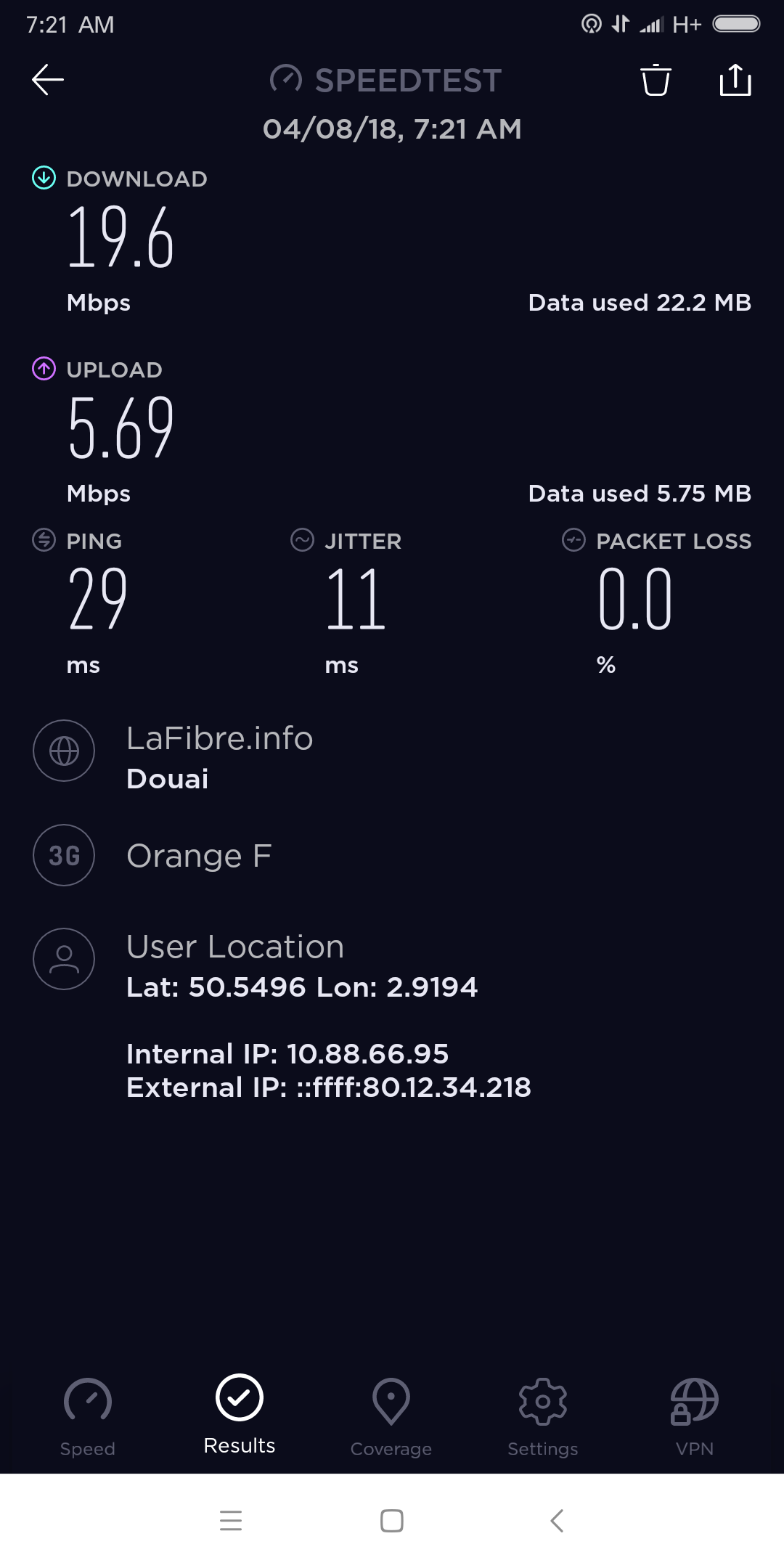Encore plus qu’à l’accoutumée, pour ce test du Xiaomi Redmi Note 5 AI, je me suis intéressé à son comportement en 4G. L’exemplaire reçu ne gère pas la bande B20 (800 MHz). Une version dite « Global » avec gestion de cette dernière, devrait être disponible courant mai. Sur le réseau Bouygues, le Redmi Note 5 AI s’est connecté en 4G sur la bande B7 avec des débits comparables à ce que j’observe habituellement. Sur le réseau Orange, la connexion s’est faite en 3G. Les débits ne sont pas pour autant, négligeables et permettent de visionner une vidéo sur YouTube, de lire et écrire ses mails ou de naviguer sur le net.