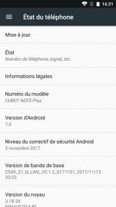 Le Cubot Note Plus tourne sur une ROM Android quasi pure. Cubot n’a fait que très peu d’ajout. Il reste deux ou trois choses qui n’ont pas été traduites en français et qui se trouvent donc en anglais mais cela n’est vraiment pas un problème. A noter que dès que le Wi-Fi a été activé une mise à jour a été proposée, celle-ci a permis d’installer notamment le dernier patch de sécurité d’Android. Cela est plutôt un bon point. Toutes les applications de Google, y compris bien sur le Play Store, sont installées d’origine.