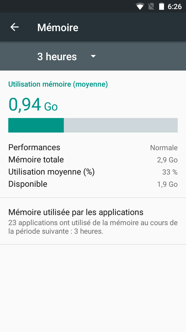 | Mémoire | Interne | RAM : 3 Go LPDDR3 800 MHz Simple canal 800 MHz |