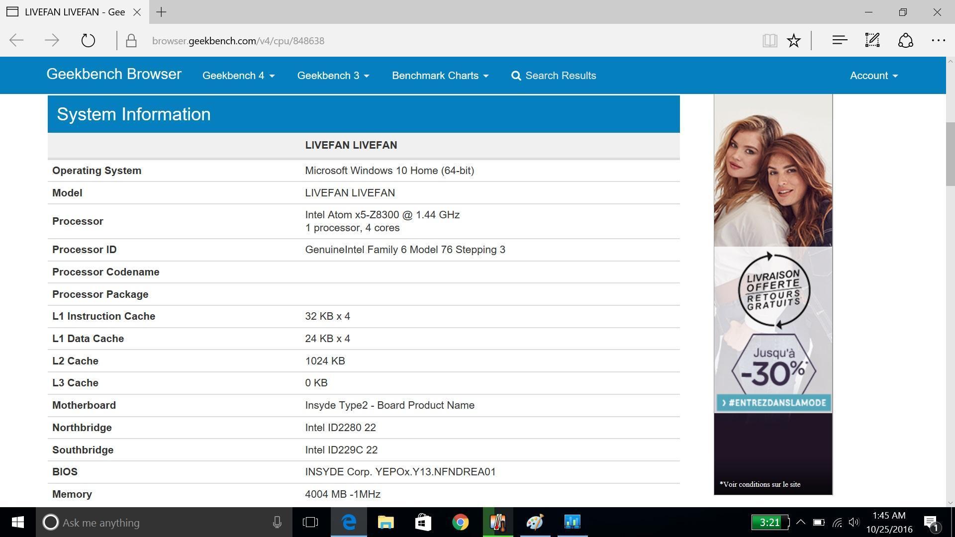 J’ai donc recherché Livefan sur Google. Et j’ai alors été un peu rassuré: c’est un fabricant d’ordinateurs portables, ouf! D’ailleurs l’un de ses modèles phares est équipé d’un processeur core M, dont le prix est bien sûr bien plus important que celui de notre version.